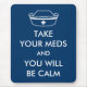 A parody of the popular "KEEP CALM AND CARRY ON" theme. A nurse's cap replaces the familiar crown accompanied by text reading, "TAKE YOUR MEDS AND YOU WILL BE CALM." Do what the nice nurse tells you to do.