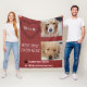 A heartfelt memorial blanket designed to honor pets lost to hemangiosarcoma. The design features a muted, deep red background with off-white text and a soft halo behind the memorial phrase, providing clear and respectful contrast. Two photos are stacked on the right; a paw‑print heart outline with your pet’s name sits opposite the top photo. “Miss you, baby girl” is placed to the left of the lower photo, and the memorial line Taken too soon by hemangiosarcoma appears along the bottom, prefixed by a small paw icon.