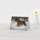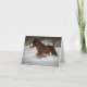 A beautiful Clydesdale stallion runs through a winter wonderland on this beautiful note card.
