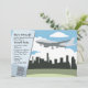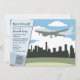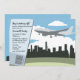 The perfect invitation for a "going away party", "farewell party", "off to college party" and more. Featuring a jetliner and a city skyline. The wording is written on a ticket stub. (VOS)