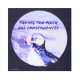 A digital painting of an Atlantic Puffin, with ocean waves crashing into the stone shoreline. The artwork is in a circle. There a purple hue cast over the image. Above the puffin's head in a purple font is: "Taking Too Much Has Consequences". Image Copyright ©2024 Kimberly J Tilley.