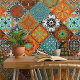 Bring timeless Mediterranean beauty to your home with this floral tile design. Inspired by Moroccan and vintage European patterns, this elegant geometric artwork adds color and charm to kitchens, bathrooms, and decorative wall tiles. Perfect for custom ceramic tiles, coasters, and stylish home décor accents. Part of a coordinated collection of 18 mix-and-match tile designs in orange, blue, brown, black, and white.