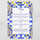 Talavera azulejo blue yellow tiles vintage Mexican bridal shower wedding menu card template, Mediterranean Italian blue tile pattern Maiolica blue tiles Greek tiles pattern menu cards