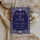 The matter paper is our sample of choice -- it's a reasonably priced, good quality, nice feeling paper stock. We were a little concerned the muted rustic blues might not reproduce all that well (usually by light colored samples), but they're just gorgeous! The white lettering is perfect in combination with the blue background, and the typography is all easy to read.
