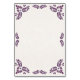 This Talavera Purple Floral Minimalist Spanish Wedding Table Number design features a minimalist approach with delicate, symmetrical purple floral motifs placed in each corner and along the edges. The small, leaf-like shapes create a sense of movement while maintaining an airy, open space in the center, allowing for ample text placement. The simplicity and elegance of the pattern evoke traditional Talavera tiles, giving the design a classic Mexican artisanal feel.