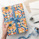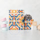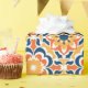 Chic wrapping paper featuring talavera tile design in shades of blue, orange and yellow.