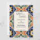 Azulejo blue Portuguese Talavera tiles vintage Mexican wedding save the date invitations template, Mediterranean ornate folk tile pattern wedding save the date invitation editable template instant digital download Hacienda style wedding save the date invitations