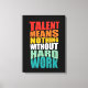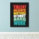 A bold and inspiring motivational typography design featuring the powerful phrase “Talent Means Nothing Without Hard Work.” Styled with a retro vintage aesthetic, the artwork uses distressed textures and vibrant gradient colors transitioning from red to teal, creating a strong visual impact against a dark background. Perfect for print-on-demand products such as t-shirts, hoodies, posters, and wall art, this design appeals to entrepreneurs, athletes, students, and anyone driven by discipline, hustle, and success mindset.