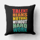 A bold and inspiring motivational typography design featuring the powerful phrase “Talent Means Nothing Without Hard Work.” Styled with a retro vintage aesthetic, the artwork uses distressed textures and vibrant gradient colors transitioning from red to teal, creating a strong visual impact against a dark background. Perfect for print-on-demand products such as t-shirts, hoodies, posters, and wall art, this design appeals to entrepreneurs, athletes, students, and anyone driven by discipline, hustle, and success mindset.
