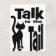 Black and white design with a black cat walking away and "Talk to the Tail" at the right.