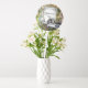 Medium air-filled balloon with a vintage Alice in Wonderland image, on both sides, of Alice when she's 10 feet tall standing beside a customizable scroll and an image of the Mad Hatter's tea party with Alice, the March Hare and Dormouse. See the entire Wonderland Balloon collection in the DÉCOR | Balloons section.