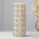 Tall candle with an intricate floral pattern