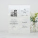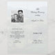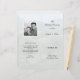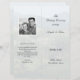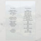 Tall, folded wedding program template with a scenic background of mountains and hydrangea trees. Add a picture of the couple to the back of this tall program with a personalized "thank you" message to family and guests. Template text inside makes it easy to customize with charcoal gray printed text. **Please do not change the paper type.