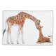 This realistic digital oil painting of the African landscape displays a mother giraffe lowering her long neck to snuggle her baby expressing our own lovable kisses and emotions.