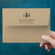 Rustic textured envelopes are printed with a brown kraft pattern and open to reveal a pattern of tiny hunter green pine trees. Personalize the back flap with your return address, topped by a trio of pine tree silhouettes. Designed to coordinate with our Tall Pines wedding and event invitation collection.