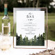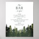 Invite guests to grab their favorite libation with our charming rustic wedding bar menu sign. 11x14 bar sign features a bottom border of evergreen pine trees in rich shades of hunter green, with "the bar is open" in off-black lettering. Includes three headings and three body text fields to add your wine, beer and spirit selections or signature cocktails.