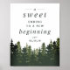 Invite guests to grab some sweets with our charming rustic wedding dessert table sign. 11x14 dessert table sign features a bottom border of evergreen pine trees in rich shades of hunter green, with "a sweet ending to a new beginning" in off-black lettering. Personalize with your wedding date underneath the inscription.