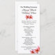 Pink plumeria flowers on tall, white wedding programs. Black and white, affordable ceremony programs are decorated with Hawaiian plumeria flowers.