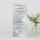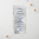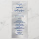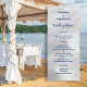 Wedding menu template for a beach themed reception. White sand background image with navy blue text. Menu title is in handwritten script font and the rest is printed text. First names of the bride and groom are at the top and the menu selections are listed in a paragraph to easily customize for your event. Choose any paper style, or use the instant download option.