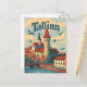 An enchanting and nostalgic depiction of Tallinn, the capital of Estonia, highlighting its medieval charm and architectural beauty. The design features the city's iconic old town with its cobblestone streets, historic buildings, and towering spires, all rendered in a vintage style. This artwork captures the timeless allure and rich cultural heritage of Tallinn, inviting viewers to explore its storied past.