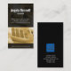 An accountant holds a sheet of numbers as the calculator prints it out. A familiar task that goes on everywhere in accounting departments and companies. The top and bottom of this card is rendered in black, leaving the calculator exposed in a ochre colored hue. Over this black background, your name and details are emblazoned in bright white and grey, making them stand out boldly. A design that's particularly suited for anyone in the accounting, finance or administration line.