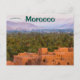 This postcard features Tamnougalt, Morocco. Tamnougalt is a kasbah and date palm oasis in the Atlas Mountains, and located in the Draa River valley in Morocco, approximately 75 km south of Ouarzazate. The village is close to Agdz and has a famous kasbah. Its name means 'meeting point' in Tachelhit. Photo credit: Sergey Pesterev, 2017.