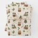 Tan and Black & White Puppies Christmas Pattern Wrapping Paper Sheets