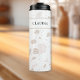 A subtle tan and beige earth tone chips Terrazzo pattern on white speckled background decorates this 12oz thermal tumbler. Easily change name with the Template provided; ample space to add text. Stainless body, plastic lid. Vacuum-sealed double walled construction retains temperature, hot or cold. See "About This Product" at side for more information and care.