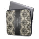 Tan black laptop sleeves. Black damask laptop sleeve. Tan black damask laptop covers. Jewel laptop covers. Jewel laptop sleeves. Elegant laptop sleeves. Elegant laptop covers. Personalized damask laptop covers. Damask laptop covers. 13 in laptop covers.