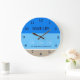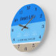 Tan Blue Stripes Family Name Beach House Large Clock
