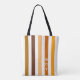 Tan Brown Orange Vertical Stripes Monogram Tote Bag