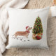 Tan Dachshund Funny Christmas Dog with Tree Throw Pillow