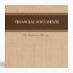 Classic Financial Documents binder is personalized with your family name or you can delete it. You can also change the title if you need the binder for a different usage. Background is a tan crackled look and there is a brown, tan and cranberry colored banner that wraps around to the other side. This binder can be used to keep all your personal records in for easy access, i.e., mortgage, banking or estate information, healthcare proxy, passwords, etc. Everything stays organized and you can locate it right away!