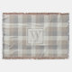 Tan Gray Ivory Neutral Rustic Plaid Monogram Throw Blanket