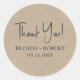 Whimsical minimalistic modern, tan color linen texture image customizable script typography, welcome wedding gift sticker. The tan linen printed texture background adds a touch of organic feel of classic elegance. Other colors are available.