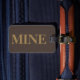 Luggage tag with name and address with a tan "MINE" on a brown background color. Personalize with your name and address information using the easy templates.