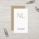 Tan Monogram Minimalistic Modern White Vertical Business Card