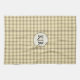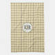 Tan and brown plaid covers this kitchen towel Casual, rustic, always in style. The neutral colors ensure that it will go with any color scheme. Personalize with your name or initials in a brown and tan circle.