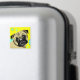 Contemporary Pug art on yellow background with aqua color circles