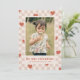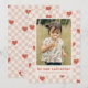 A festive Valentine's Day card with red hearts scattered over a tan checkerboard design. The message and customer information is placed beneath a large photo, and the back of the card features a coordinating pattern.