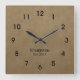Personalize this modern neutral wall clock design with your own text. Acrylic wall clock is printed in a tan stucco look pattern that can fit into any modern color scheme and is available in your choice or round or square faces.