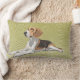 This gorgeous lumbar pillow has a reclining black, white and tan Beagle against a light fern background.