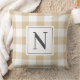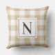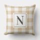 Tan White Gingham Check Monogram Initial Throw Pillow