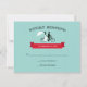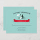 Tandem bicycle wedding rsvp cards with the bride and groom riding a tandem bike. Vintage typography and a red banner on an aqua background. Get the matching tandem bicycle wedding invitations.