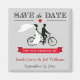 Trendy Save the Date magnets with a bride and groom riding a tandem bicycle. Fun vintage design with a red banner and red heart on a grey background. Also available in other colors. Easy to use template - just enter the names of the Bride & Groom, along with the wedding date in the space provided.