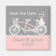 Fun wedding design featuring a flower covered tandem bicycle. A three tier wedding cake is on the back bumper and two love birds with hearts complete the theme. Customize gifts and stationery with your own personalized text. On T-shirts, tote bags, wedding shower invitations, save the date announcements, postage, wedding planners, keepsakes and more! PinkInkArt original!