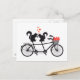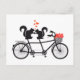 tandem bicycle with cute squirrels and red hearts, vector drawing, art illustration for wedding invitation, engagement, anniversary, cards.