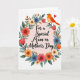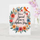 This greeting card features a centered message of appreciation in dark lettering, surrounded by a full floral wreath that feels like a gentle embrace ❤️. The background fades from blush pink near the middle to a pale peach toward the edges, giving the words extra focus without feeling harsh. The text sits neatly in the open space inside the wreath, with the darker color standing out against the soft gradient. Around it, flowers in coral, sunny orange, calm blue, and creamy white curl together with fresh green leaves and small buds, creating a tender, close-knit look like friends leaning in for a photo 🌼. The painterly style adds soft texture to each petal, and the flower centers are detailed enough to draw your eye without overpowering the message. On the upper right of the wreath, a small orange bird perches as if watching over the scene, adding a sweet, companionable touch. A tiny red heart floats just above the bird on the wreath’s upper-right curve.