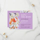 Elegant and chic save the date announcement card with beautiful blooming tangerine branches. Floral botanical card with spring delicate flowers and citrus. Orange, pastel and lilac colors. Personalise with your text.