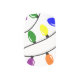 This nail art has a Christmas design of tangled lights in red, blue, yellow, green, pink, and purple.
